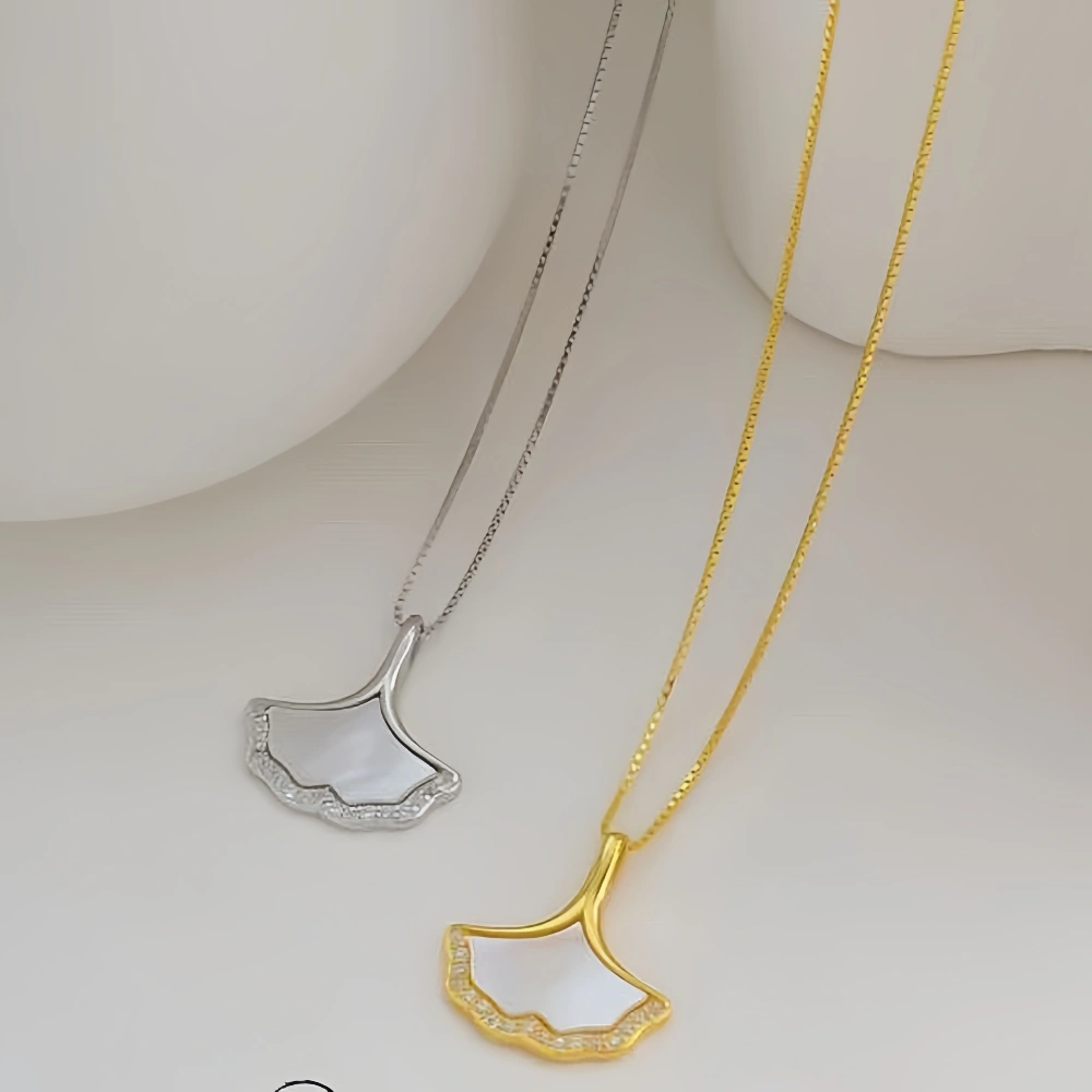 Ginkgo Leaf and Shell Mini Skirt Women’s Titanium Steel Necklace