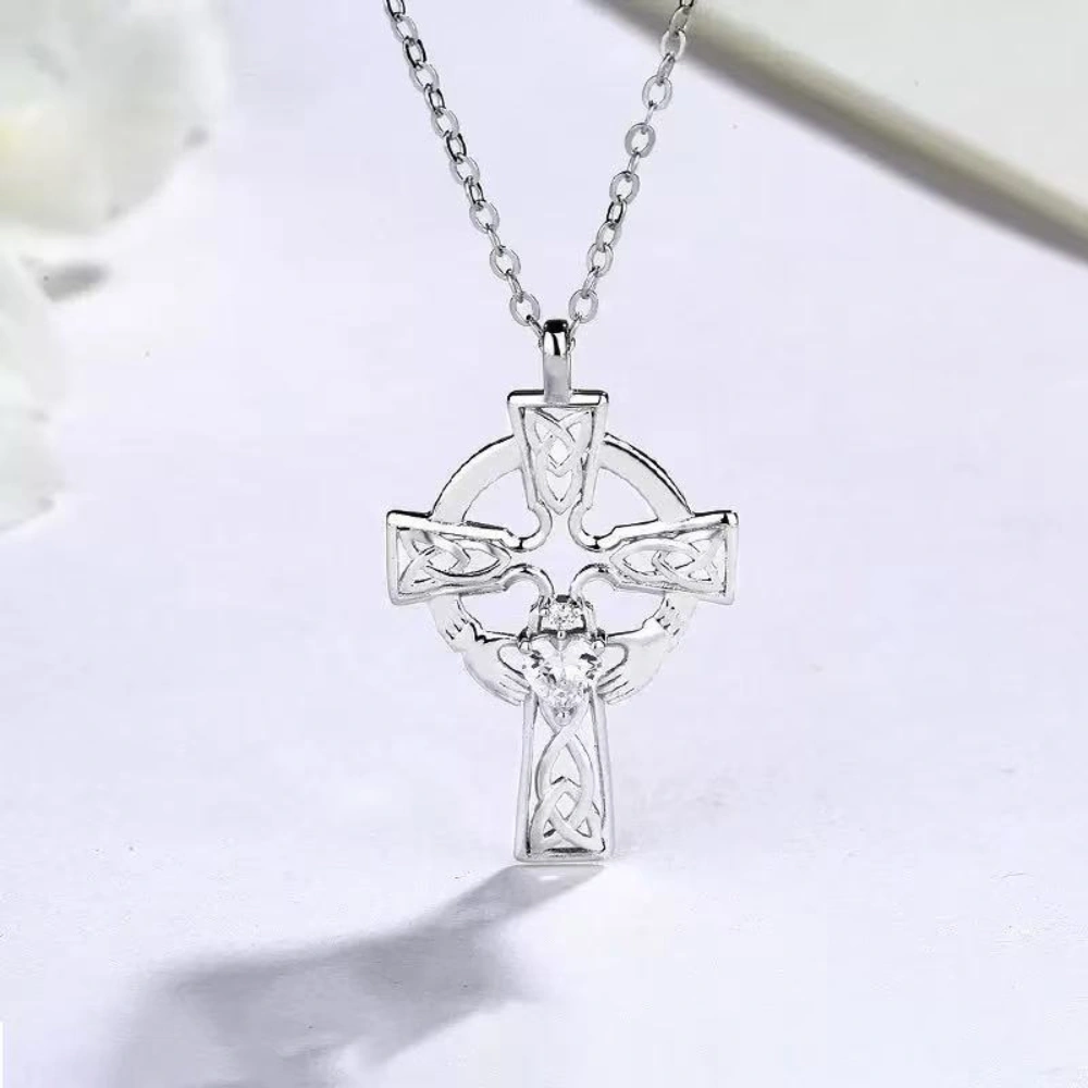 An exquisite piece of Irish style jewellery, this Celtic Claddagh Heart Cross Pedant Necklace is crafted of 925 sterling silver, sure to add a touch of classic luxury to any look.