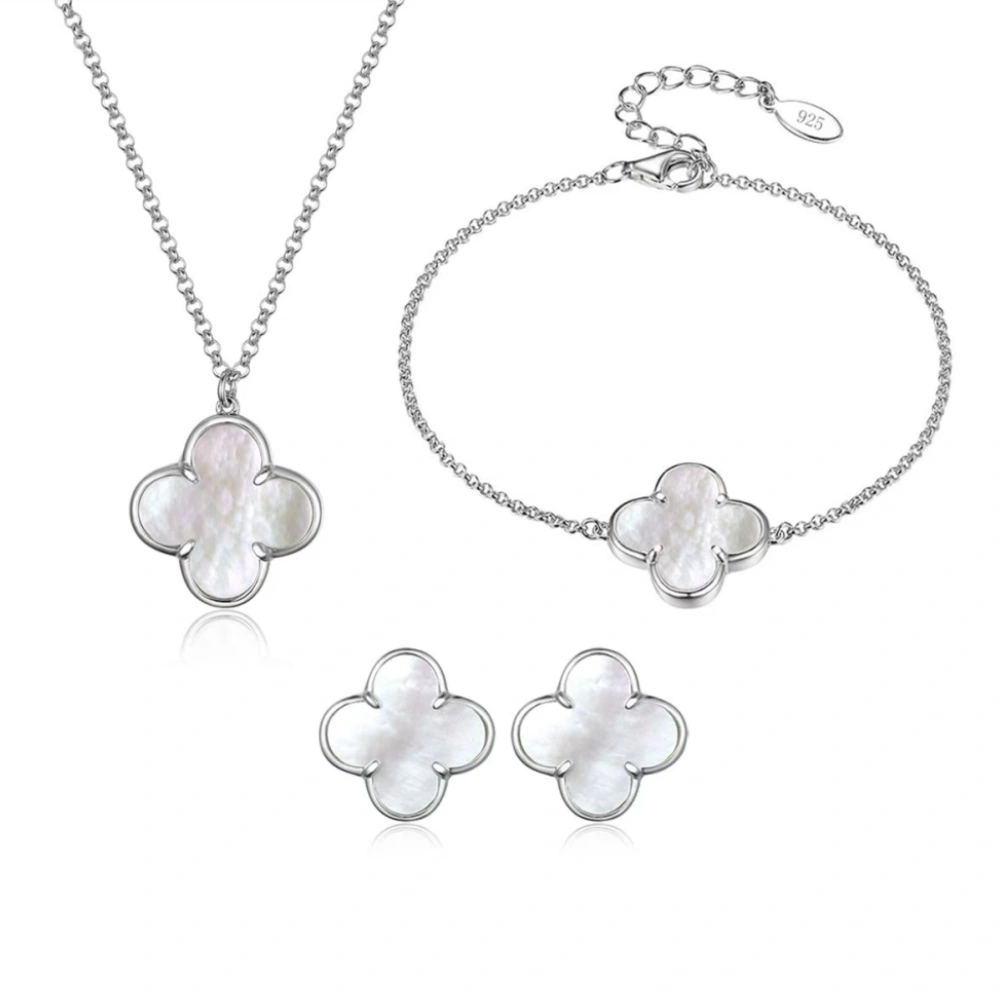 Lucky Four-Leaf Clover Sterling Silver Jewelry Set with Zircon